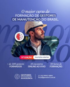 O Curso Gestores em Manutenção de Excelência chega a sua 19ª edição, formando profissionais de Manutenção preparados para liderar, decidir e estruturar o processos de Manutenção alinhados a empresa.