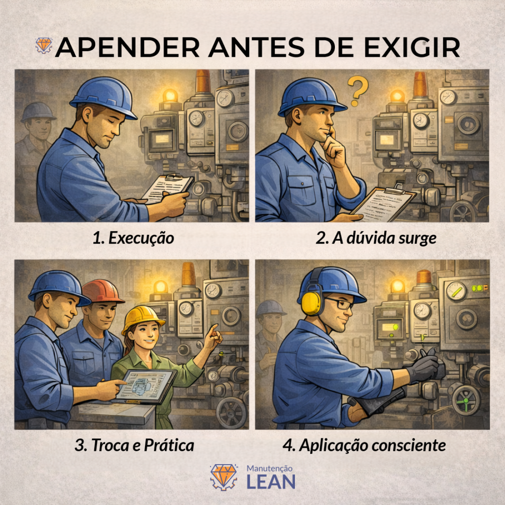 Na manutenção, é comum esperar que alguém “aja diferente” sem que tenha tido espaço para entender, testar, errar e aprender. Mas comportamento não muda por ordem – muda quando faz sentido.